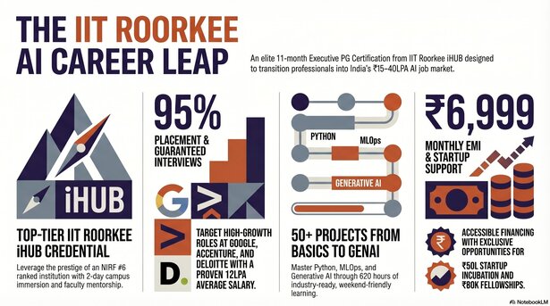 In India's exploding AI job market (35% YoY growth), Data Science skills aren't optional—they're your ticket to ₹15-40LPA roles at Google, Accenture, and Deloitte. IIT Roorkee's Executive PG Certification in Data Science & AI from iHUB DivyaSampark delivers IIT-level expertise without quitting your job.