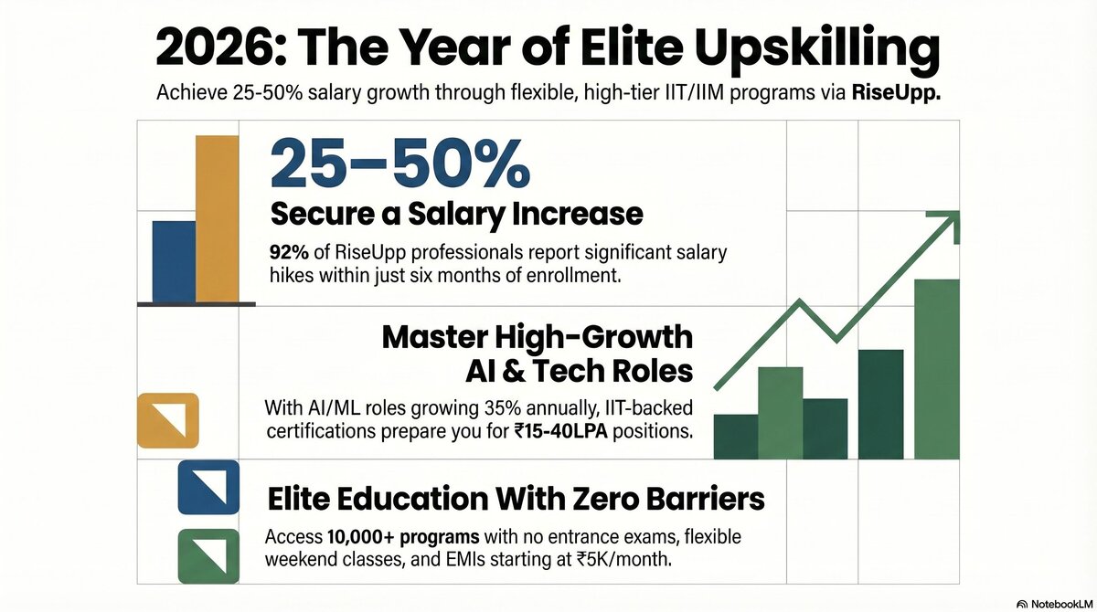 RiseUpp.com, India's #1 AI-powered marketplace for online degrees and certificates from IITs/IIMs, makes this reality. No entrance exams. Flexible weekends. EMI options. Compare programs, get free counseling, and enroll with placement support.